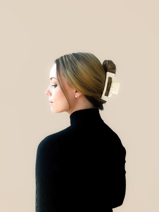 "THIS IS TRULY THE BEST AND ONLY CLAW CLIP YOU’LL EVER NEED. I HAVE VERY THICK AND LONG HAIR AND HADN’T HAD ANY LUCK FINDING A CLIP BIG ENOUGH TO HOLD ALL OF IT IN AN UPDO. THIS CLIP DOES AND IT HOLDS UP AMAZINGLY! I SERIOUSLY WEAR THIS CLIP EVERY DAY! IT’S SO EASY TO THROW MY HAIR UP AND IT LOOKS SO CUTE NOW. CAN’T RECOMMEND THIS PIECE ENOUGH!"
